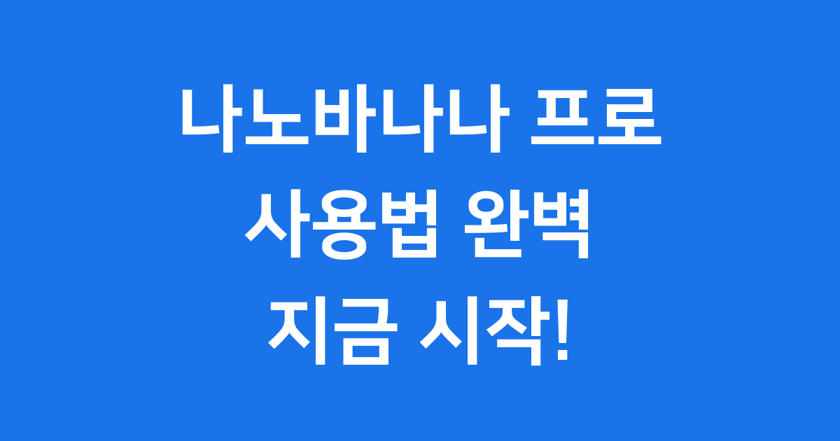 나노바나나 사용법 2026년 이미지 생성 가이드